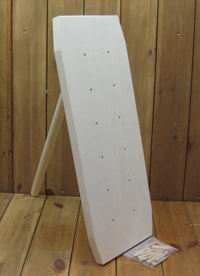 Haapaa, pituus 50 cm, leveys noin 19 cm. Pakkaus sisältää tukikepin ja puunaulat.