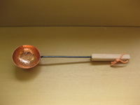 Saunakauha kuparinen Pituus 50cm Kahva tervaleppää, koivua tai mäntyä Kahvaan haluttu kaiverrus.